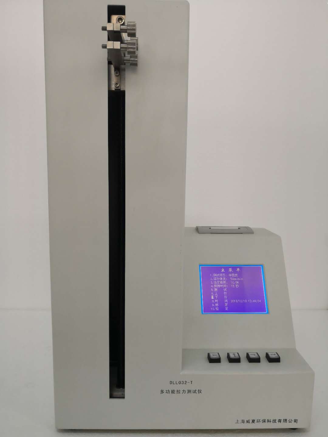 采用PLC可編程控製器,5.7英寸彩色液晶顯示屏,中文菜單顯示、力值傳感器、測力機構、傳動機構、機載打印機等組成。中文菜單顯示,人機對話設定各項參數自動運行測試;實時顯示拉力的最大值、平均值,自動判別合格與否,並由打印機打印出測試數據。儀器終身免費升級。